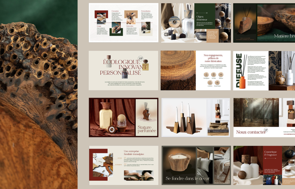 Brief MP Design Bois est une entreprise spécialisée dans la création d’objets en bois destinés à l’univers du luxe : flacons de parfums, diffuseurs d’ambiance et accessoires de cosmétique. La marque allie savoir-faire artisanal, exigence esthétique et collaborations avec des artisans d’exception, de la conception à la fabrication.